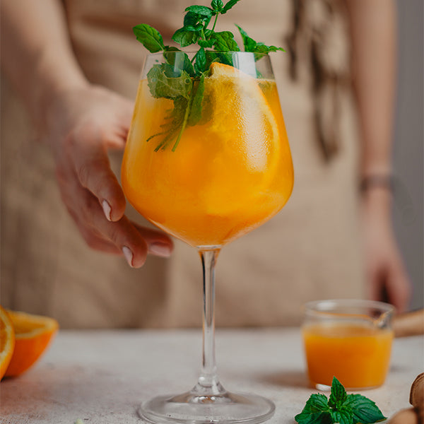 Ta słodko kwaśna, bezalkoholowa wariacja na temat aperol spritza łączy w sobie cechy idealnego napoju na imprezę lub bankiet – soczysty kolor, orzeźwiający smak i pełnię bąbelków. Dla większego efektu podawaj go koniecznie w kieliszku do aperol spritza.