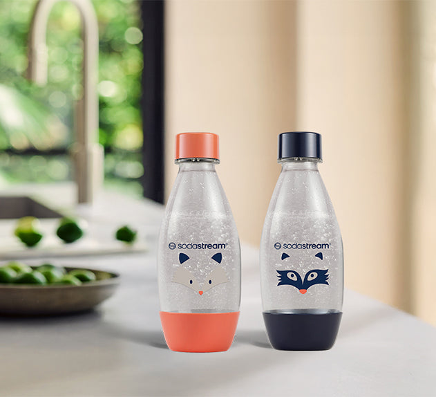 Optymalna pojemność 0,5 litra, kompaktowy rozmiar i szczelne zamknięcie sprawiają, że dzieci mogą zabierać swoje bąbelki gdziekolwiek zechcą. Butelki są kompatybilne z popularnymi saturatorami SodaStream: Terra, Art, Enso, Spirit oraz Source.