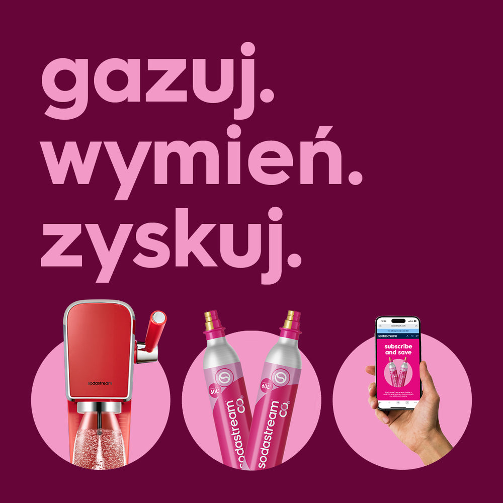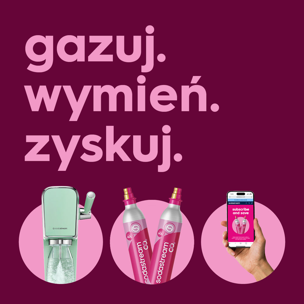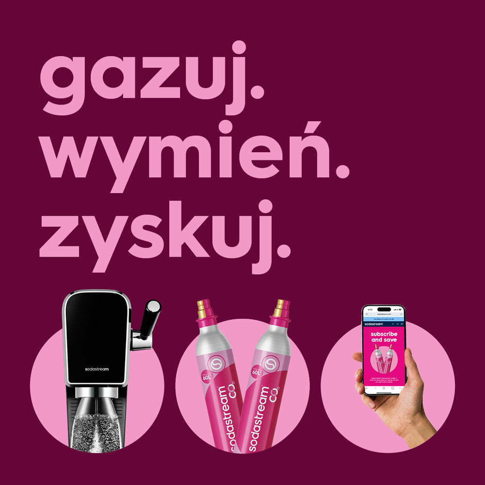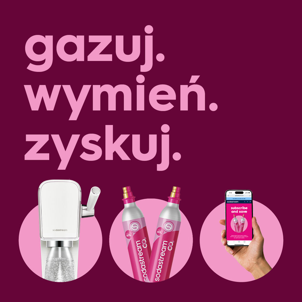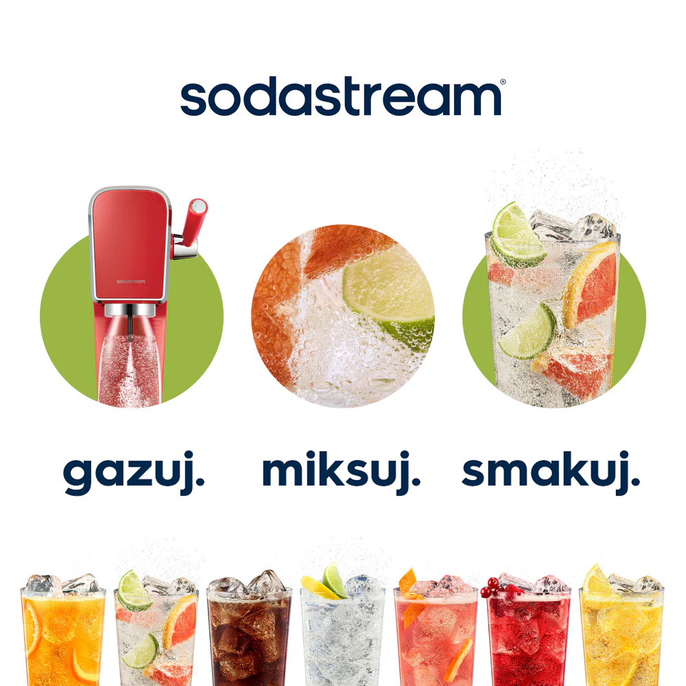 pij wodę gazowaną lub dodaj ulubiony smak, by stworzyć ulubiony napój idealnie dopasowany do Ciebie.